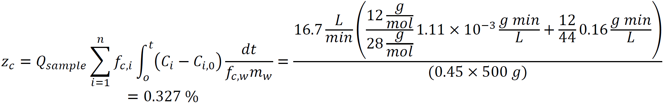 Figura C.3 - Concentraciones variables en el tiempo de CO2 y CO en el tubo de muestra