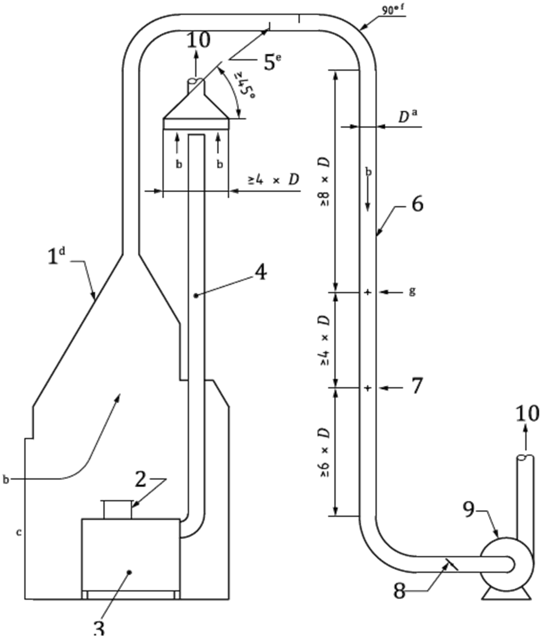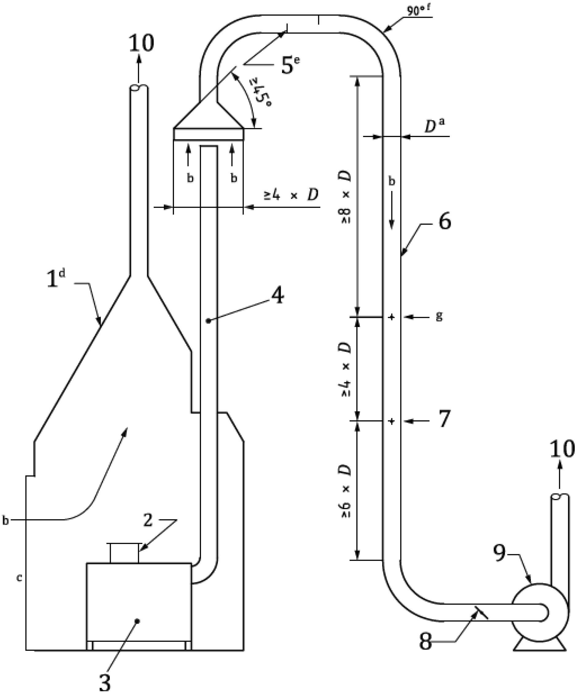 Figura D.3 - Campana y aparatos de túnel de dilución para recolectar las emisiones en la chimenea excluyendo emisiones fugitivas de las estufas
