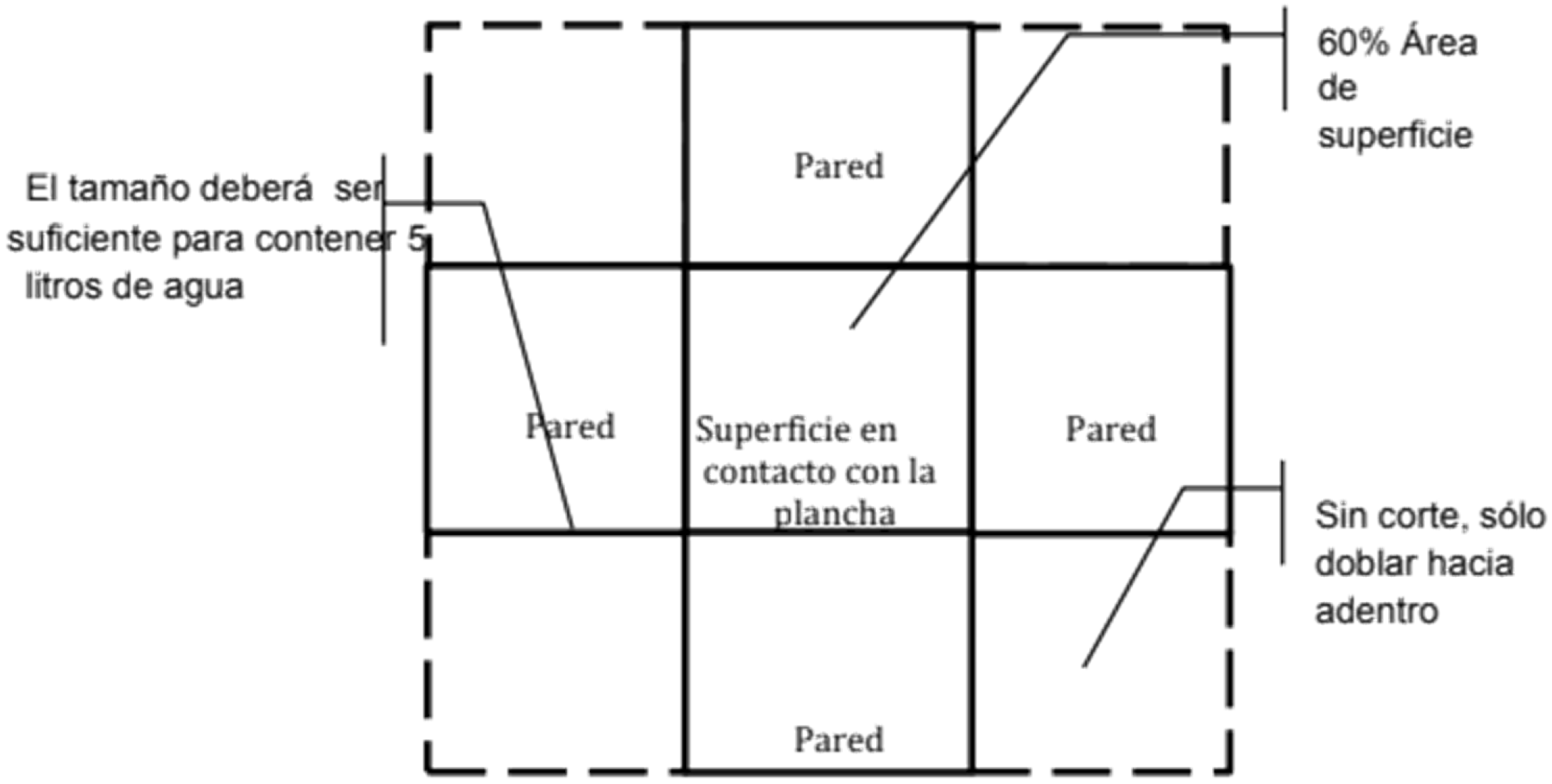 Figura E.4 - Ejemplo de dimensiones de olla de BoPET para una plancha de 40 cm por 60 cm