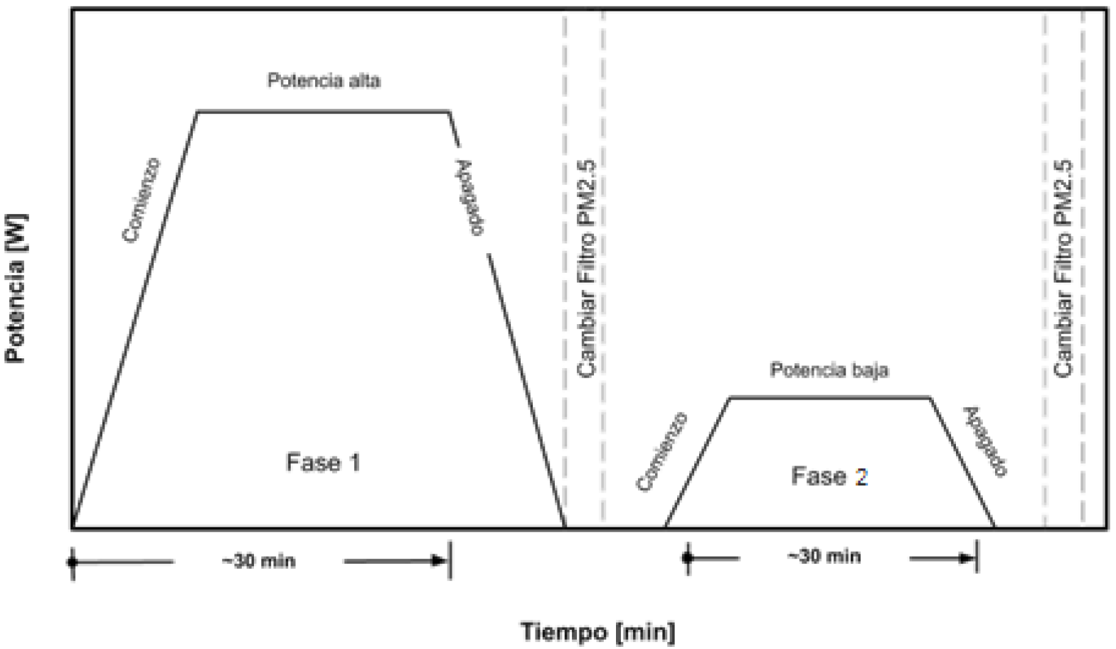 Figura 1 - Diagrama de la secuencia de la prueba estándar para estufas con un solo nivel de potencia