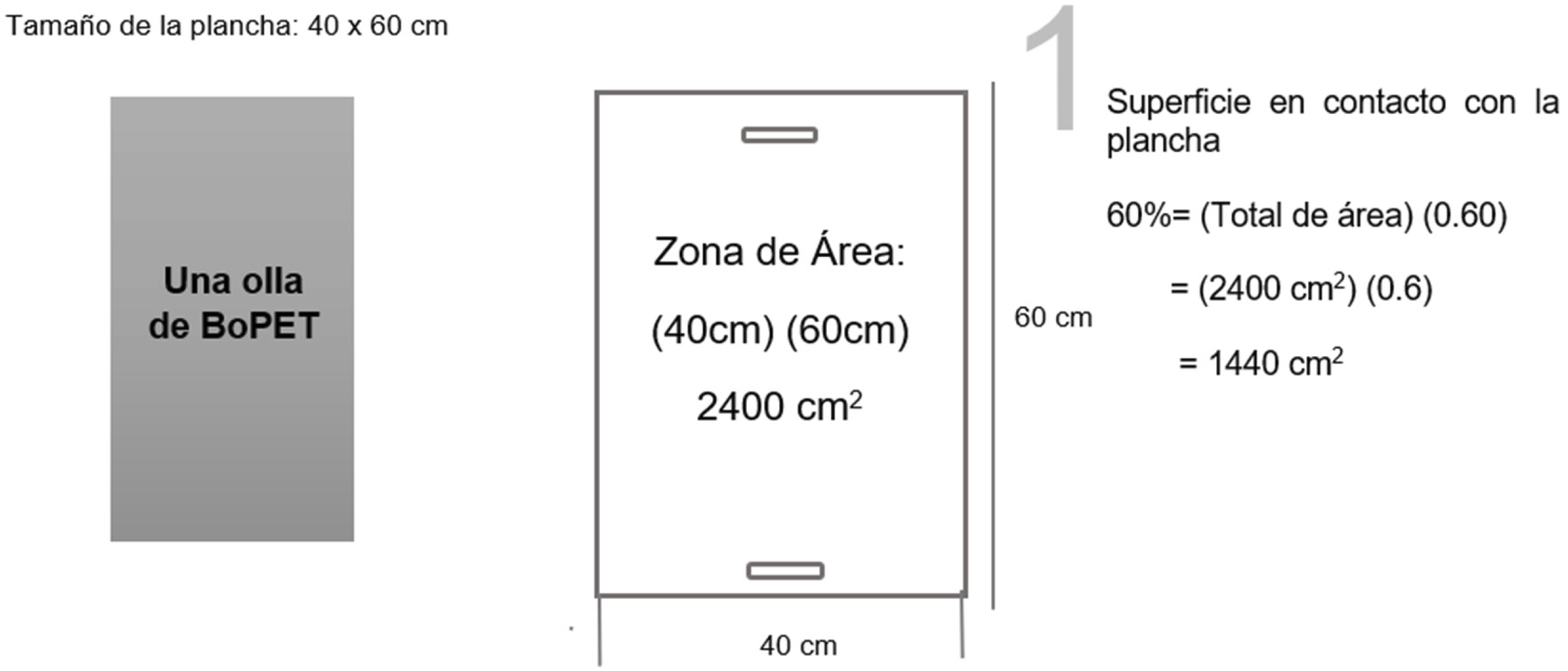 Figura E.3 - Ejemplo de las dimensiones de la superficie de la olla de BoPET en contacto con la superficie de la plancha de 40 cm por 60 cm