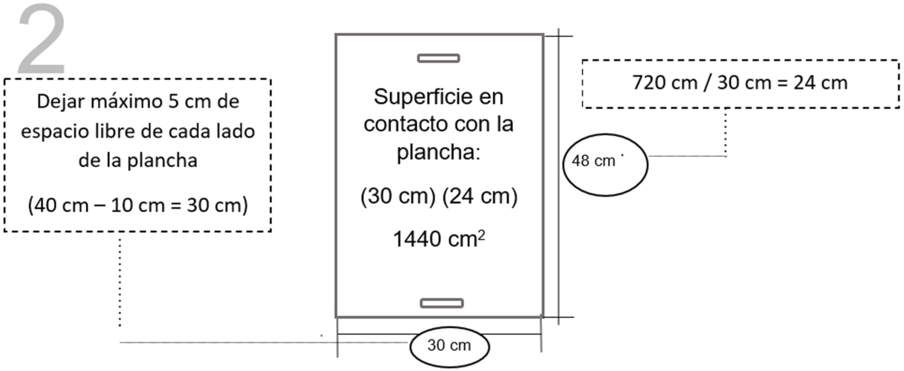 Figura E.5 - Ejemplo de cálculo del tamaño de la olla usando dos ollas de BoPET para una plancha de 40 cm por 60 cm